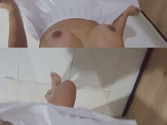 Skinny small tits milf bitch takes off her clothes
