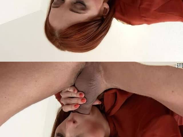Closeup outdoors POV video of a cute redhead giving head and riding