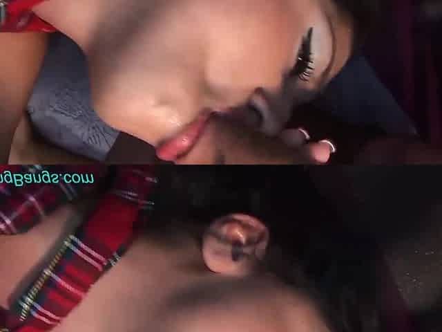 Tiny squirting Asian girl gets fucked by a huge black cock in the ass