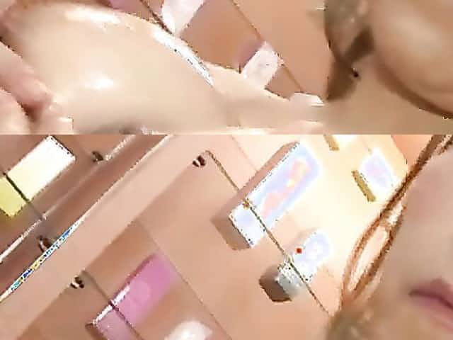 An oiled up Japanese girl gives a massage and rides a dick