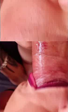 Amateur sloppy blowjob with an oral creampie. Close-up. Lots of lipstick on my dick.