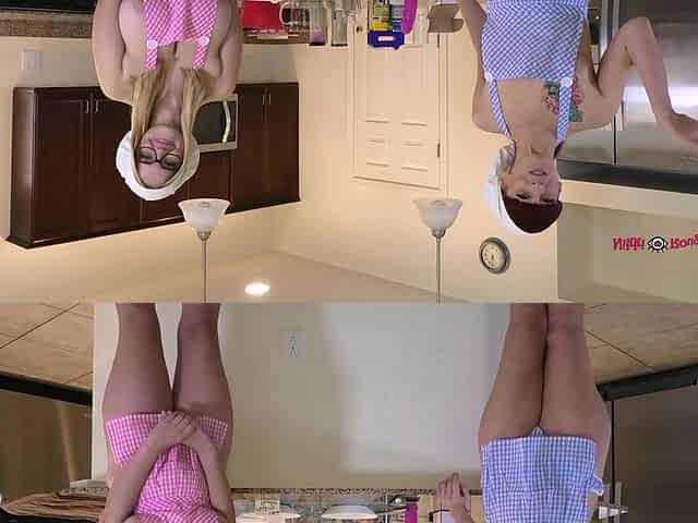 Angie Faith being doggystyled is licking Codi Vore's pussy
