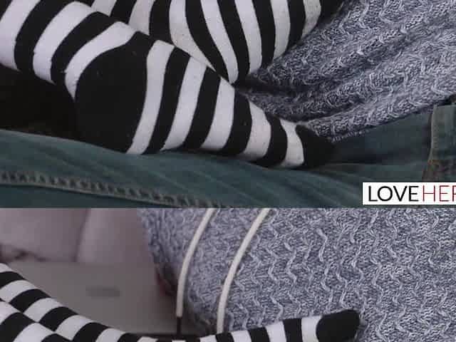Sexy Slim Frisky Cutie Uses Her Marvelous Nimble Feet To Seduce a Handsome Guy