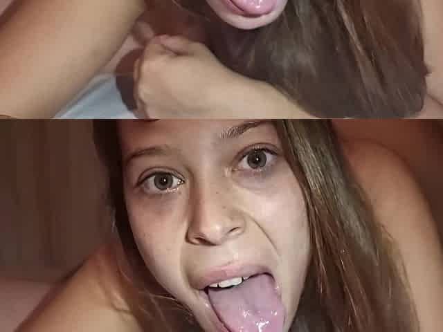 collection of very cum for a cutie in the mouth and on the face, she loves cum!