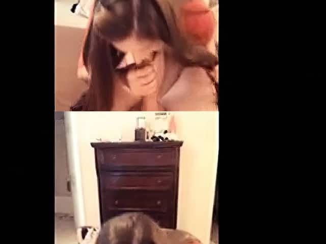 Coed babysitter invited over for a nasty threesome while her friend masturbates
