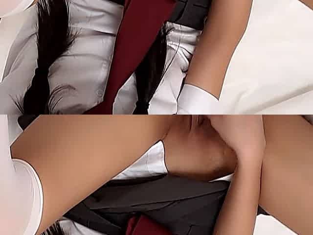Loud climax of a Japanese college girl squirting on a heap of pleasure