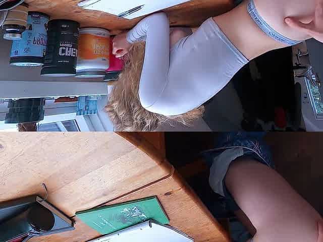 Coed fucked on a study desk