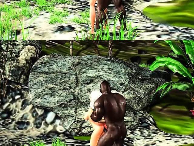 Stunning black-skinned girls are getting fucked by muscular males outdoors