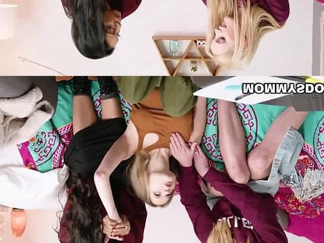 Horny college teen having finger and threesome lesbian rough sex