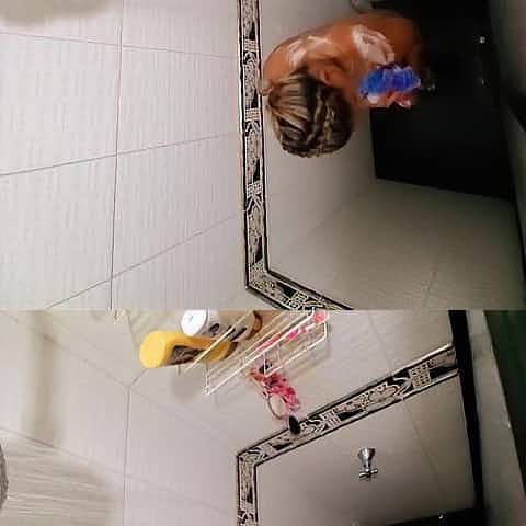 My preggy black latin babe wife taking a shower and likes to be watched
