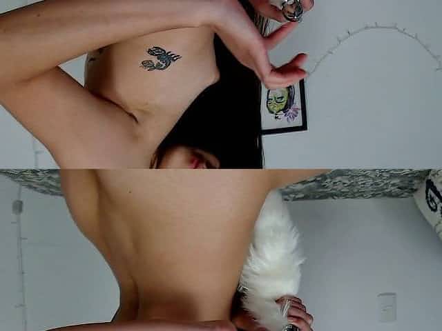 Gorgeous petite girl with tail buttplug in her butt teasing you