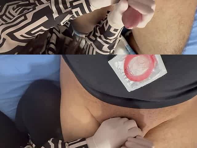 Indian Stepsister in Medical Gloves Milks My Dick on a Condom