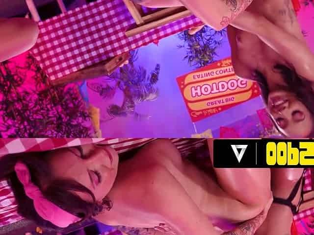OOPSIE - Eating Contest Turns LESBO THONG-ON 3SOME! Eliza Ibarra, Alexis Tae, Charlotte Sins