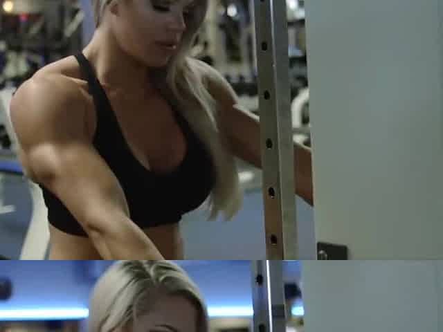 Beautiful, blonde 174cm, 75kg female physique competitor, pre-contest