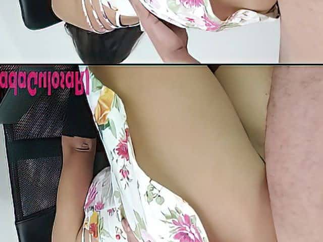 Novinha deliciosa sem calcinha levantou vestidinho pauzudo e ficou com a buceta cheia