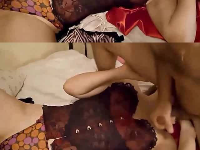 Sexy corset and lingerie on teen during sex