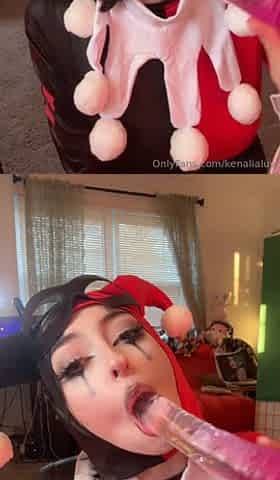 Hawt Petra in Harley Quinn Cosplay suit and ebony opaque hose
