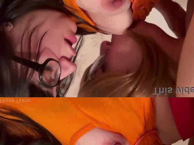 Dp and a face absolutely sprayed with cum for a cute comics gal