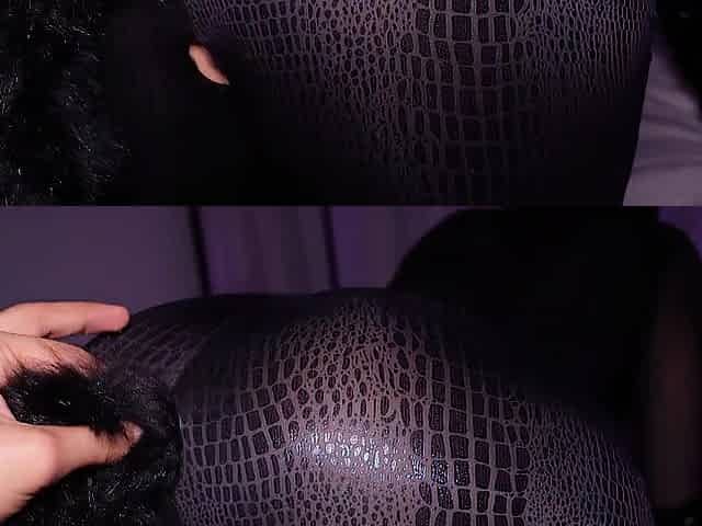 Kinky tall girl gives footjobs in her sexy ebony stockings to soothe you after work
