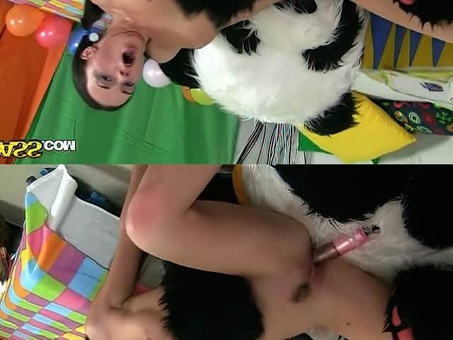 Pigtailed teen has unforgettable sex fun with sex-crazy dude in panda costume