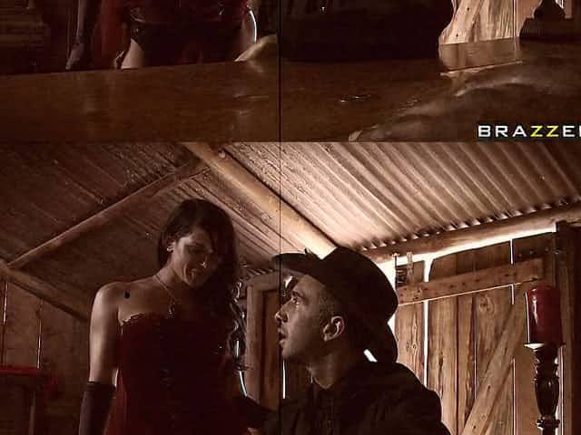 Allison Star in her super sexy and tight outfit riding a large cock