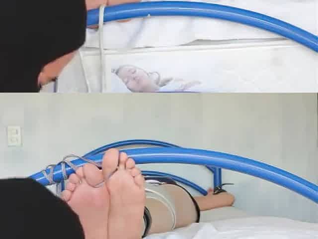 Coworker foot tickle session