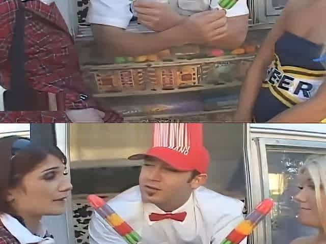 icecream truck cheerleader and school girl share cock and cream and pussy