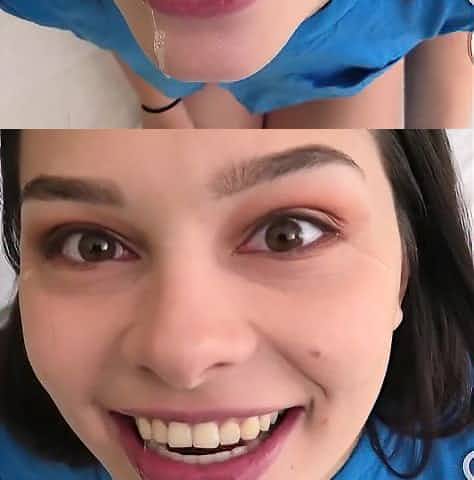 Brand new brunette teen gives a sloppy blowjob