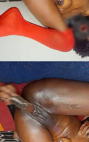 Black in red nylons pleases herself whilst home alone alone.Lot's of creaming and squirting