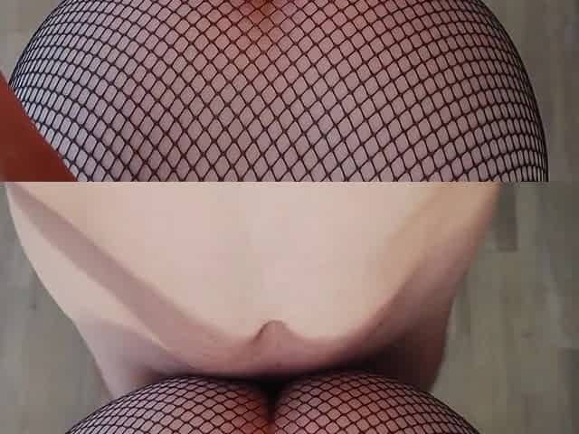 Slutty girl in fishnet stockings gets a creampie