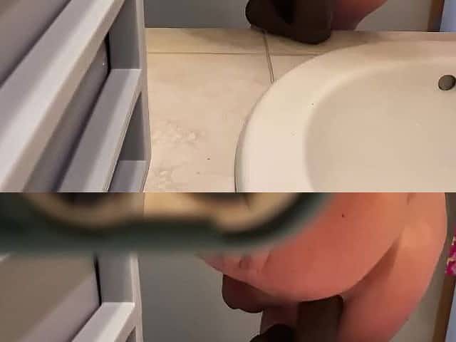 Naughty Teen Trans/Crossdresser bouncing on big dildo attached to mirror :)