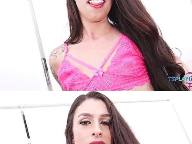 Brunette ts pornstar Thaysa Carvalho hot masturbation session