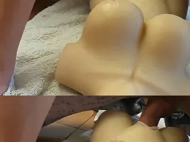Sharing a double dildo with a Fleshlight doll