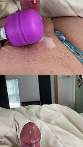 使用电动肉棒同时手淫和射精