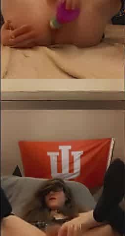 Anal action with dildo