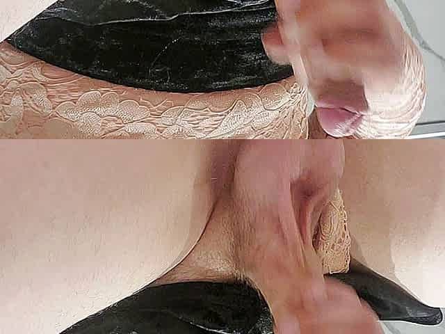 virgin sissy crossdresser masturbating with small cock