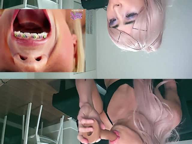cute trangender girl blowing huge dildo