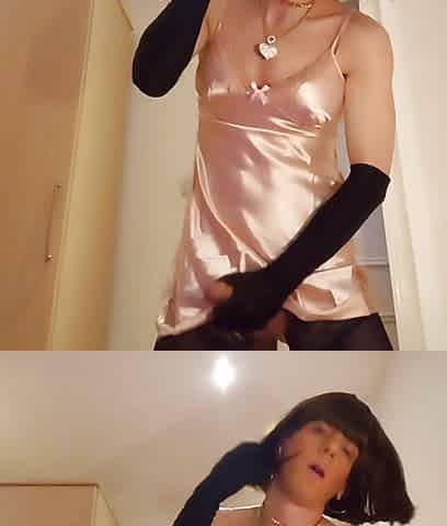 Uk doxy crossdresser in hawt sissy satin costume