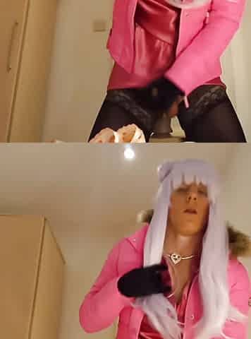PETITE TEEN SISSY CROSSDRESSER BOUNCES ON PINK SEX TOY 4K
