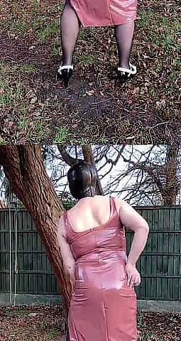 Crossdresser Sissy - ebony leather petticoat and high heels