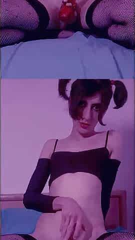 Cute anime tranny rides dildo in stockings