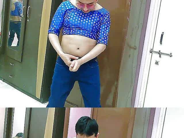 Sexy sissy crossdresser femboy Sweet Lollipop trying panties with a traditional blouse.