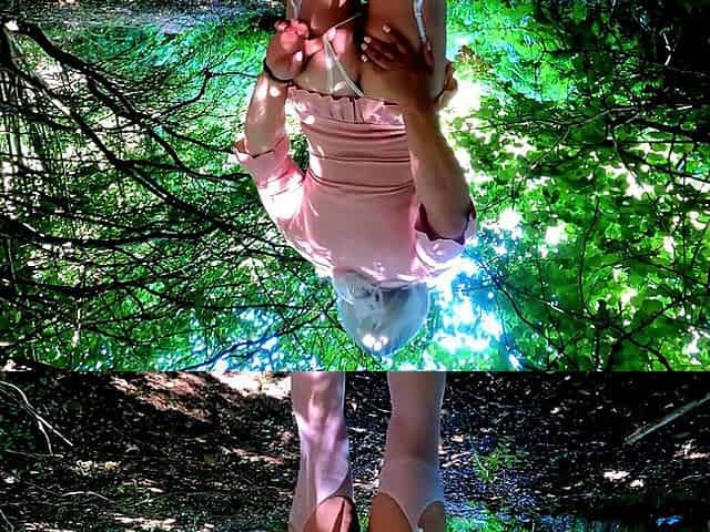 Crossdresser Kellycd2022 masturbating in pink in the woods
