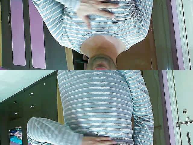 Crossdresser out for a walk showing her panties