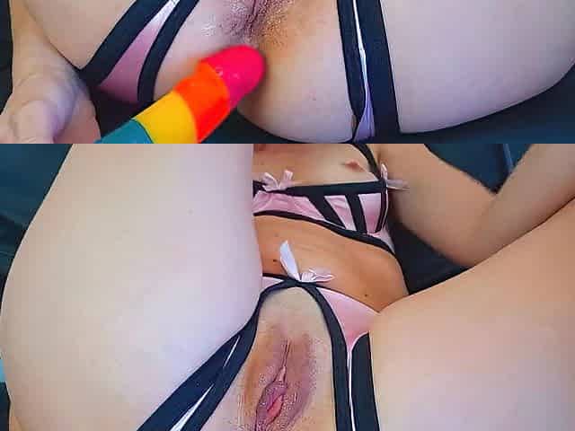 VAGINA FINGERING CLIMAX, large sex-toy in my booty, crotchless underware - Ela Stance