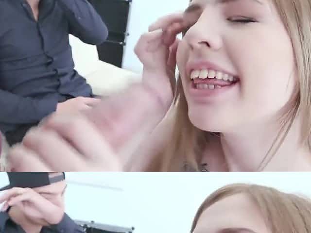 Cuckold watches as Little Eliss sucks a hard cock and gets fucked