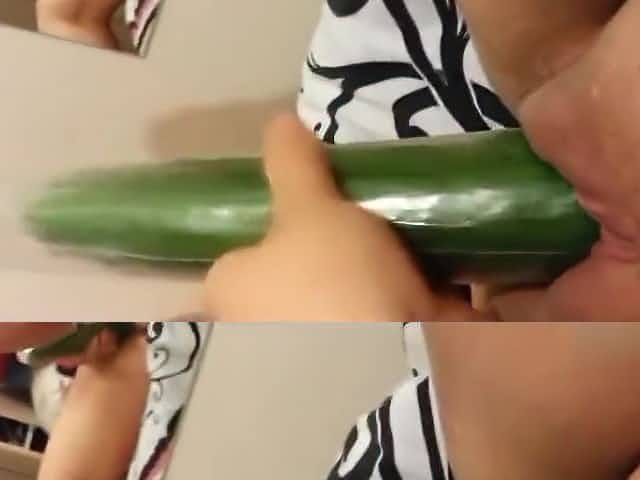 Large bitch fucking cucumber