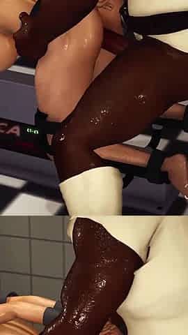 3d sexy dickgirl plays with a hot cuffed teen in the lab