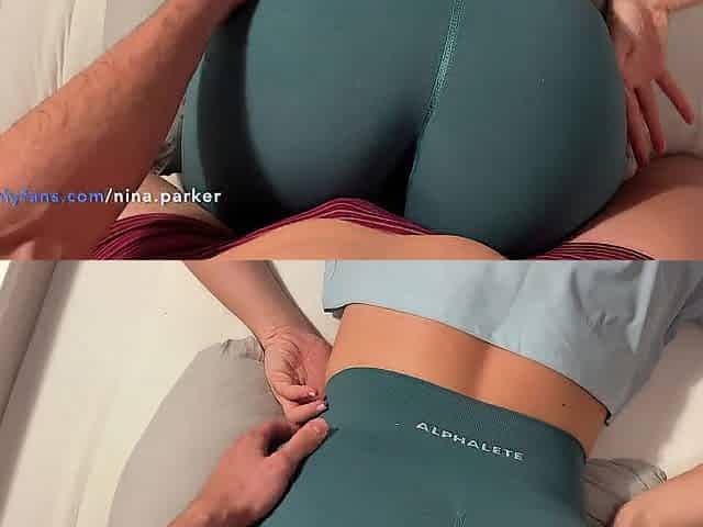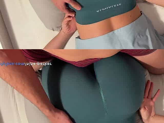 Rubbing on ideal butt and giant spunk flow on yoga panties