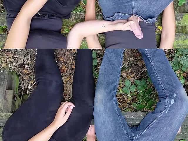 I Give A Guy A Handjob On A Bench And Make Him Cum All Over His Own Clothes!